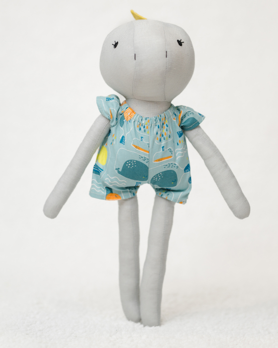 ÎNGRIJIRE: Păpușa poate fi curățată manual sau la mașina de spălat la 30 de grade, pe un program delicat. Este important să nu o puneți la centrifugă și să o lăsați întotdeauna să se usuce la aer. Deși este realizată din materiale lavabile, recomandăm o manipulare atentă pentru a proteja detaliile fine brodate.