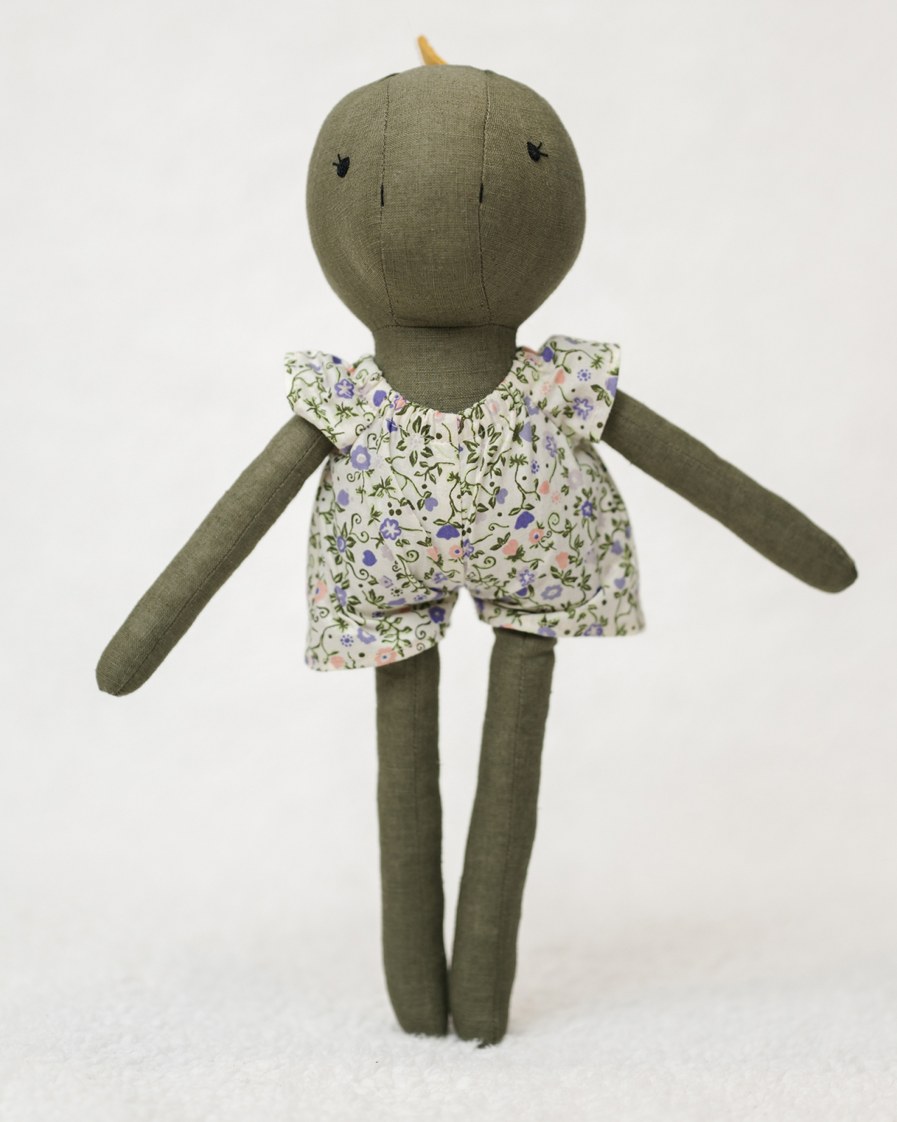COMPOZIȚIE: Această păpușă măsoară aproximativ 45 cm de la picioare până în creștetul capului. Corpul este realizat dintr-un amestec de înaltă calitate de 89% in și 11% bumbac, material care deține certificarea OEKO-TEX Standard 100 Class I (siguranță maximă pentru copii). Este umplut ferm cu fibră hipoalergenică, iar trăsăturile feței sunt brodate manual, oferind fiecărei piese un caracter unic.