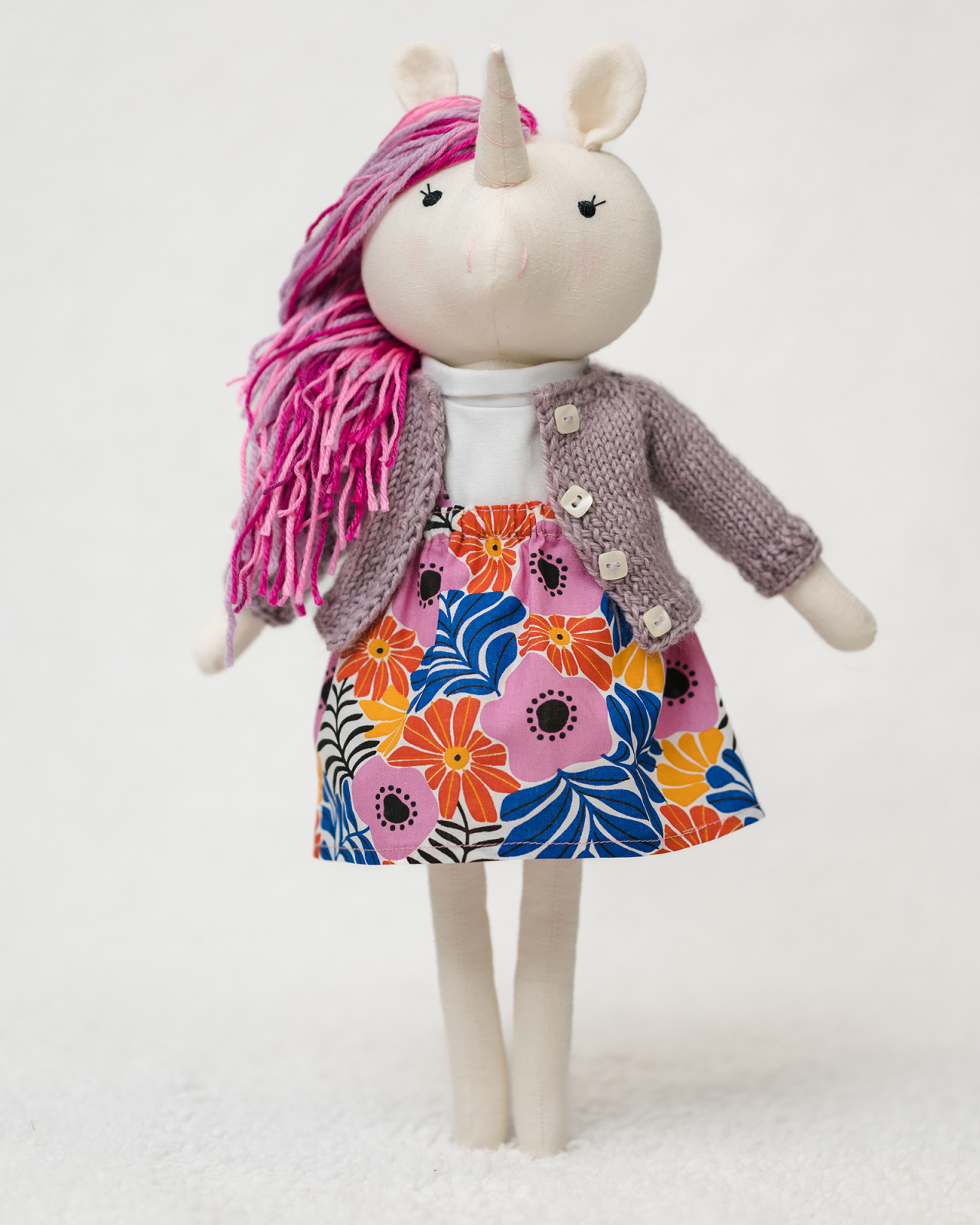 Invită magia basmelor în camera copilului tău cu acest unicorn încântător, creat pentru a fi mai mult decât o jucărie – un prieten plin de stil și personalitate! Cu coama sa bogată din fire colorate și cardiganul tricotat elegant, acesta este gata să însoțească micii exploratori în cele mai fantastice călătorii ale imaginației.