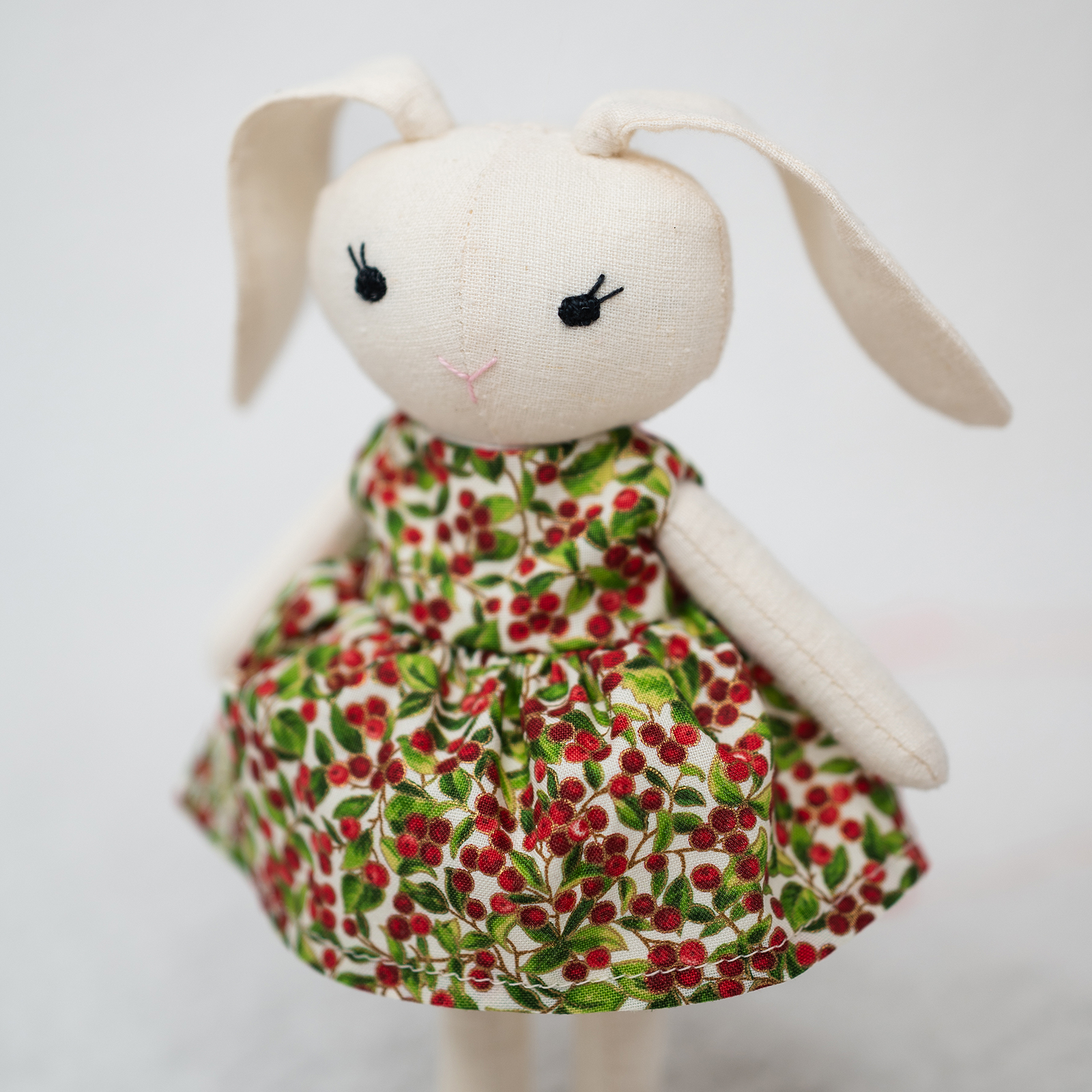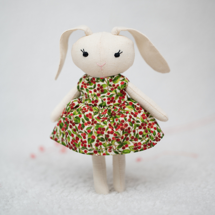 COMPOZIȚIE: Acest iepuraș drăguț măsoară aproximativ 22 cm. Corpul său este realizat din in natural de înaltă calitate și este umplut ferm cu fibră hipoalergenică. Trăsăturile delicate ale feței sunt brodate manual, oferind fiecărei piese un caracter unic și irepetabil.